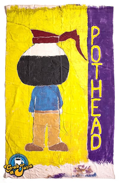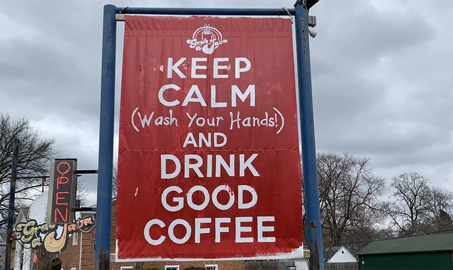 The iconic banners that are displayed at stores began as an idea to grab coffee lovers’ attention as they drove past the stores. Pete had no artistic background and started making the cheeky banners with paint overspray on drop cloths. The banners were a hit, and Springfield residents looked forward to seeing Pete’s sense of humor expressed in art.